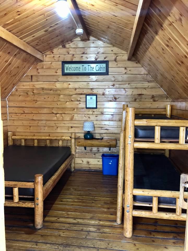 I booked the cutest little cabin, that didn't have a bathroom, but we had beds, electricity, and even a mini fridge and a microwave.