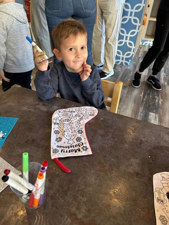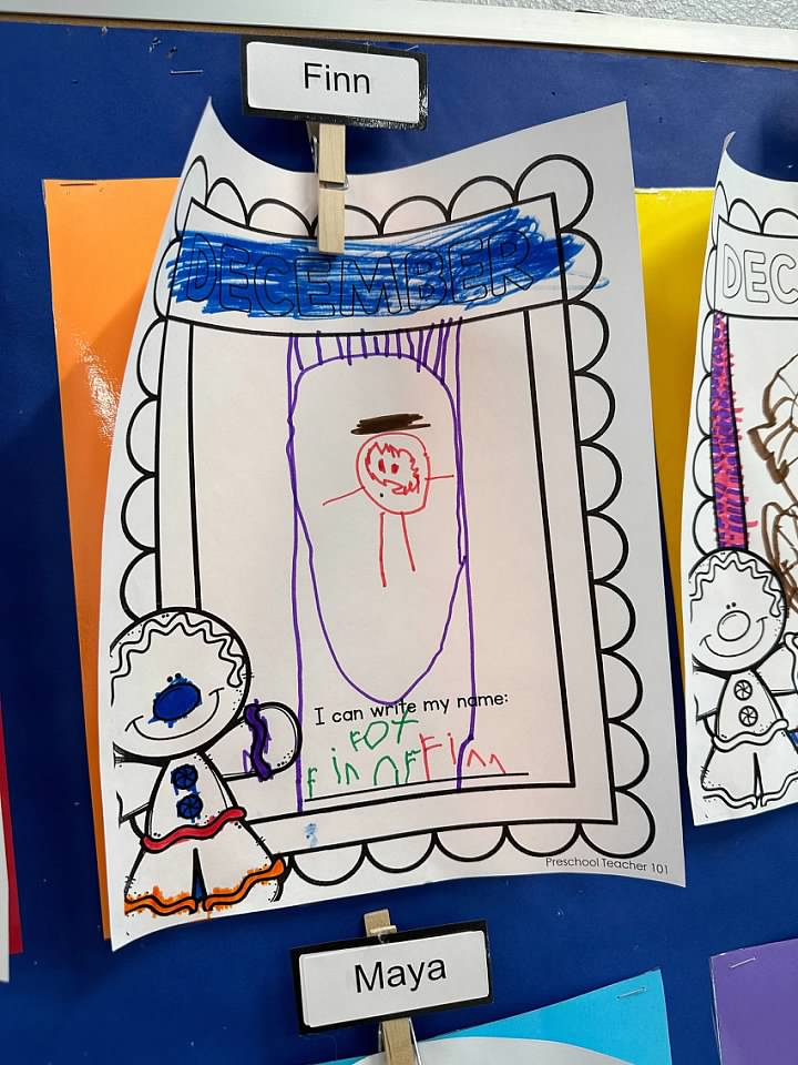 I went into Finn's classroom for their Christmas party, and noticed this artwork hanging on the wall. I thought it was cute that he wrote his brother's name as well.