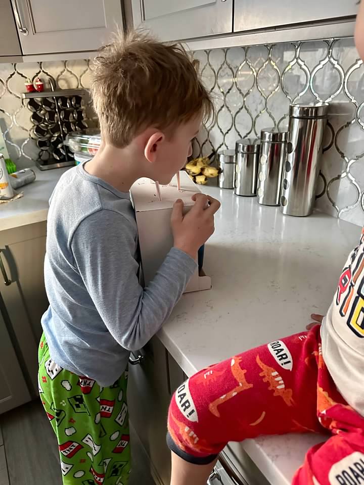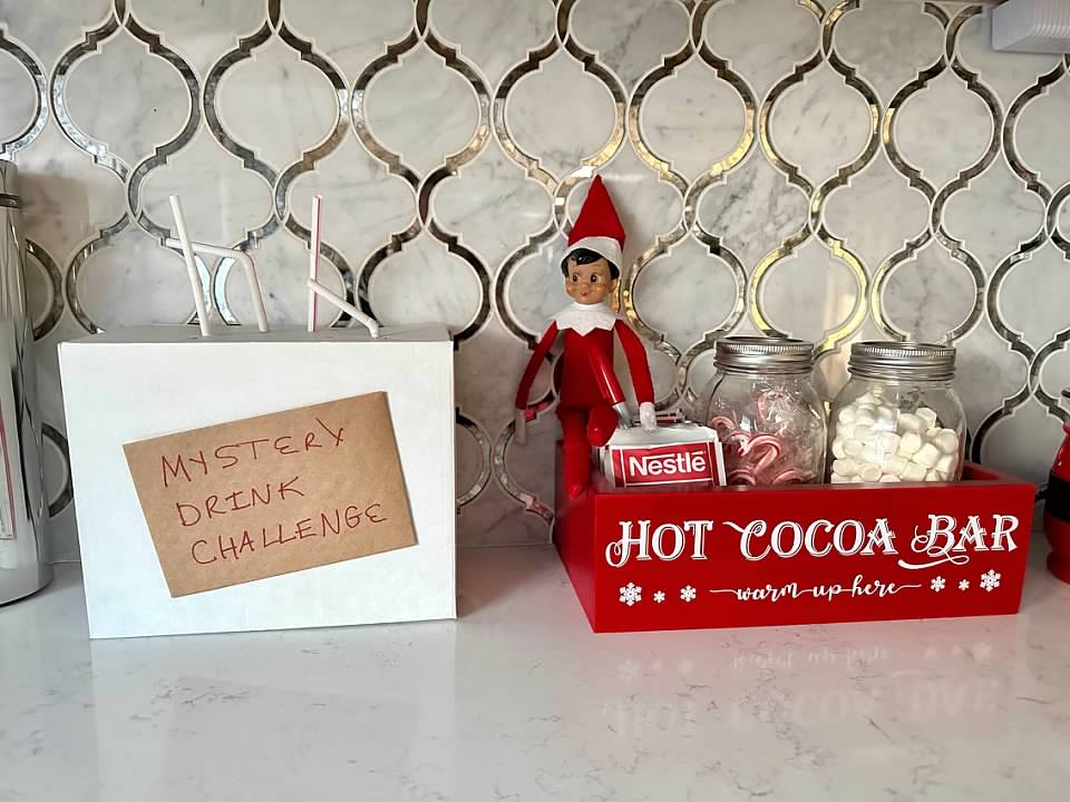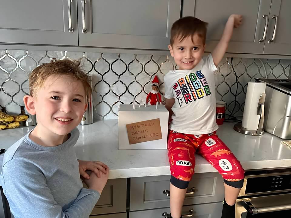 One day, Airplane the Elf created a "Mystery Drink Challenge" for the boys. They only got 1/4 correct…even thought almond milk was water! Haha!