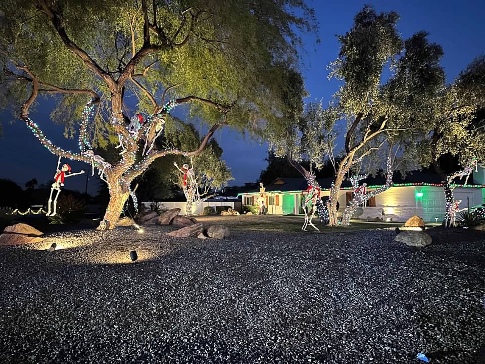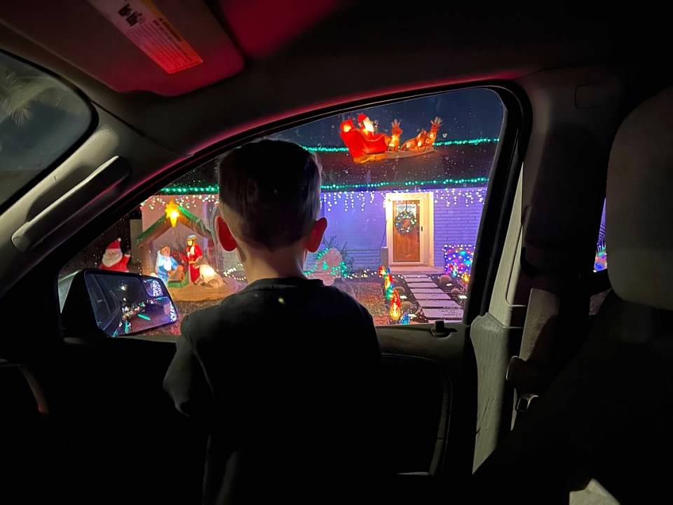 Checking out Christmas lights around our neighborhood.