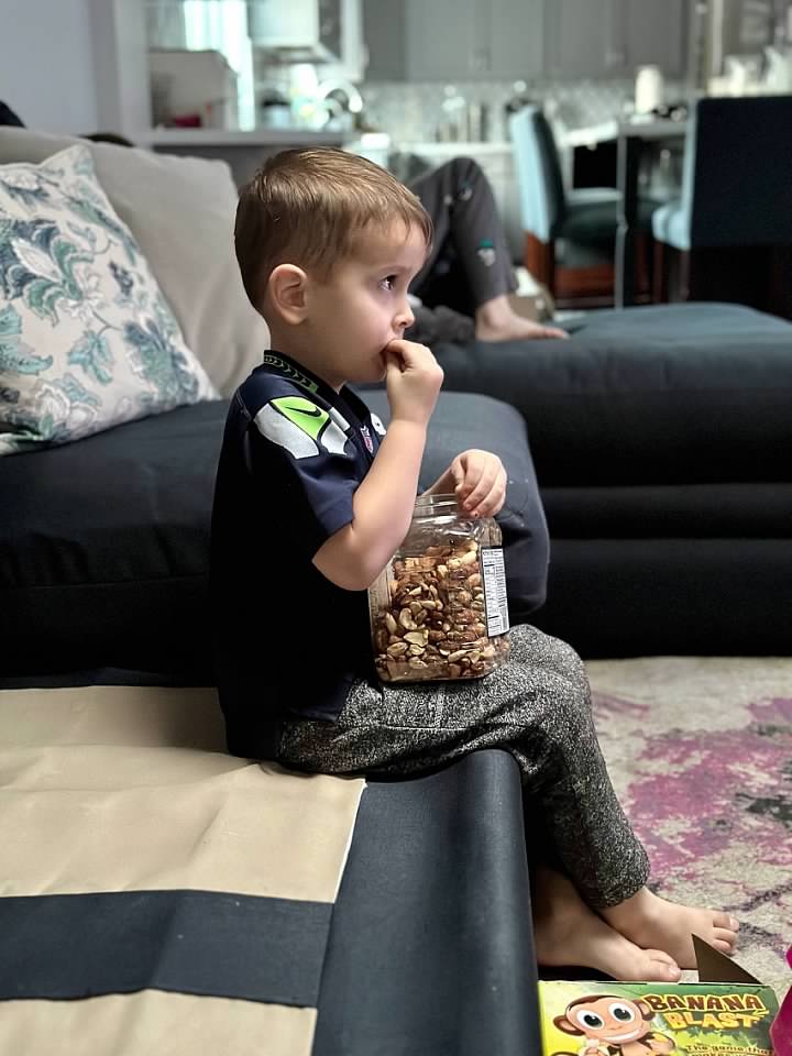 Just because I don’t want to forget these days with my little firecracker…! I was telling my friend how I’m still able to go to Finn’s class parties because he’s not embarrassed by mom yet. Fast forward an hour where I’m at said class party, minding my own business, and looking at the kids’ artwork on the wall. Finn comes up to me and says: “Stop being weird!” So much attitude in that little body. Good thing he’s so cute!