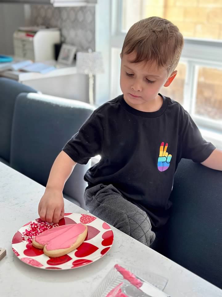 Decorating a cookie, but he will only lick the frosting, and abandon the rest!