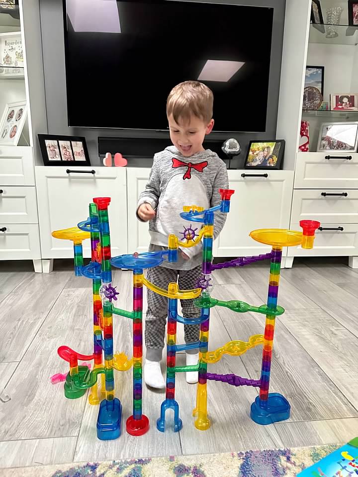 Finn and I love a good treasure hunt at Goodwill. We found this marble run for $4!