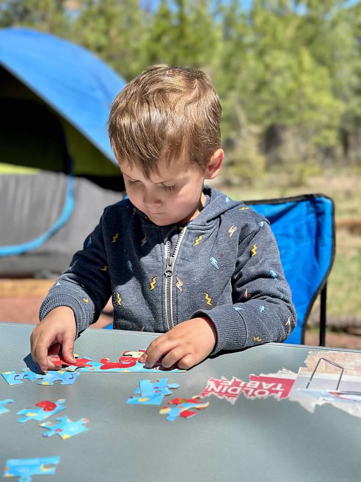 Finn was doing some math flash cards while I was setting up camp. He has been really interested in numbers lately.