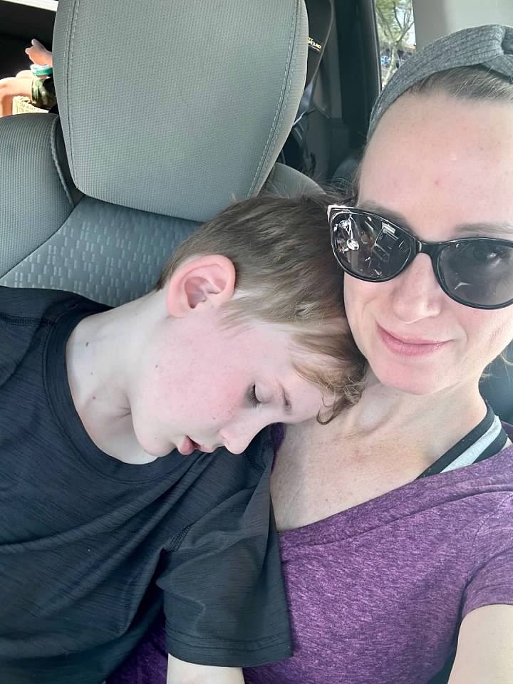I've had a good ten days of sick kids in June, they both had strep and fevers for a long time. We were waiting for his prescription to be filled, and he just wanted to cuddle up on me...oh my heart!