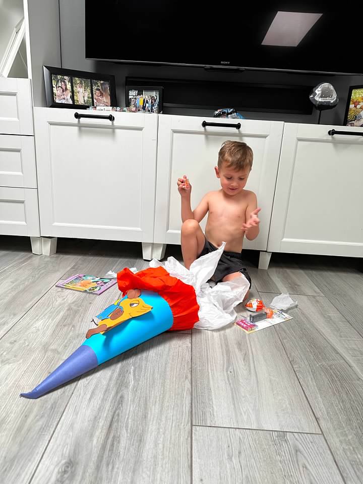 Finn received the traditional german "Schultuete" for his first day of school!