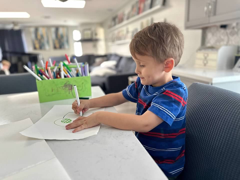We changed Fox's room a little bit, and I was very sad to say goodbye to his space room and rocket bed, but it was time, and he loves his new room.