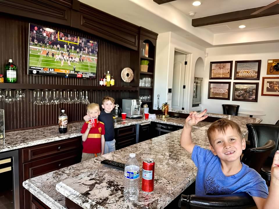 The boys are playing bar with their cousin at Grandma's house.
