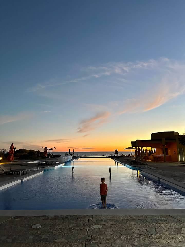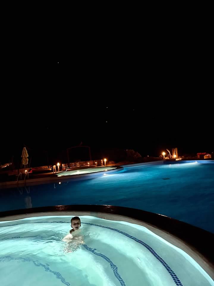 He really wanted to go into the hot tub, and he had the entire pool area to himself.