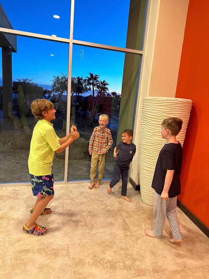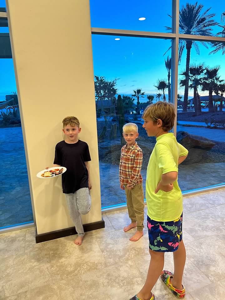 We all had Thanksgiving dinner downstairs in one of their community rooms, I think there were about 24 of us, and the boys had fun playing with the other kids there.