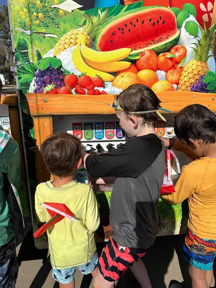 We were invited to a birthday pool party, and they had a Kona ice cream truck that came to their house, all of the kids loved it.