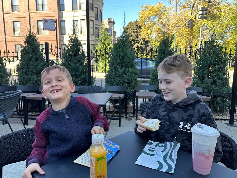 The family had work and school the next day, so the boys and I ventured out on our own, determined to figure out the Chicago public transportation system. First stop was Starbucks of course!