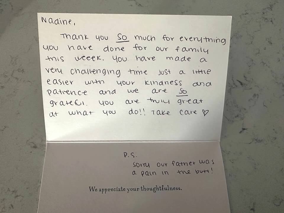 This patient and his family touched my heart. He gave me grey hairs all four days that I was with him, but I created such a bond to him and the family during this time, that we all had tears in our eyes when we said goodbye. They even gave me a little gift. These are the moments that I absolutely love my job, even when there are a lot of hard moments in between the special moments.