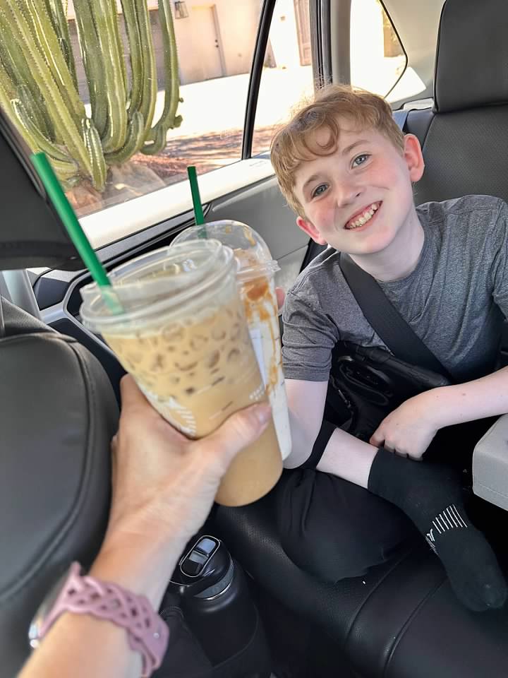 Starbucks date with Fox after school while we wait for Finn's bus (we got him one too of course).