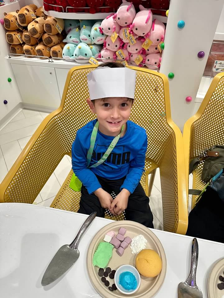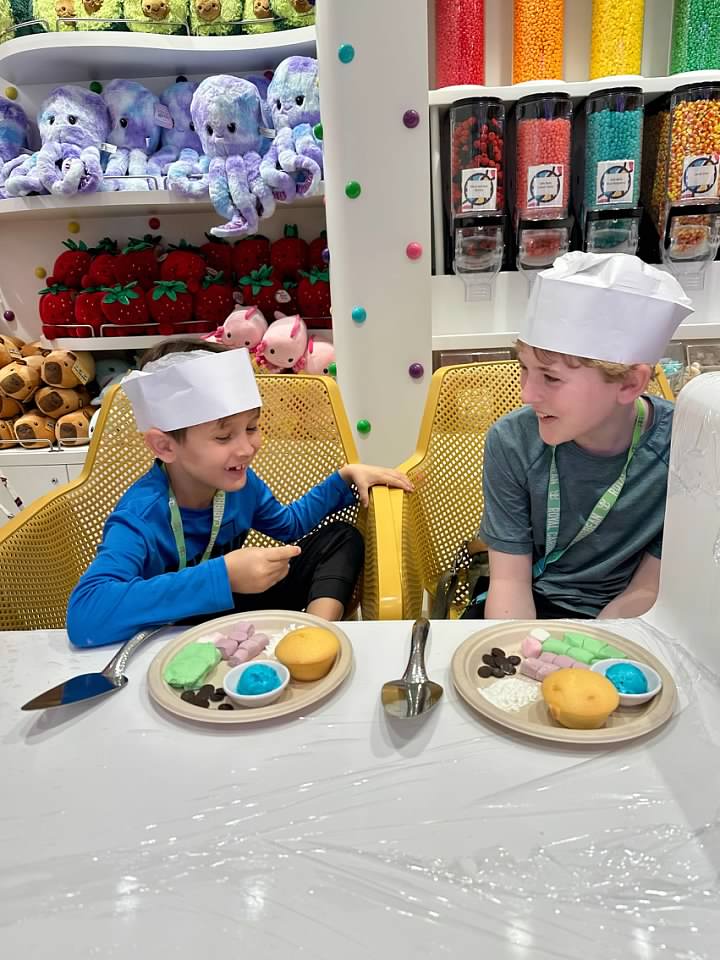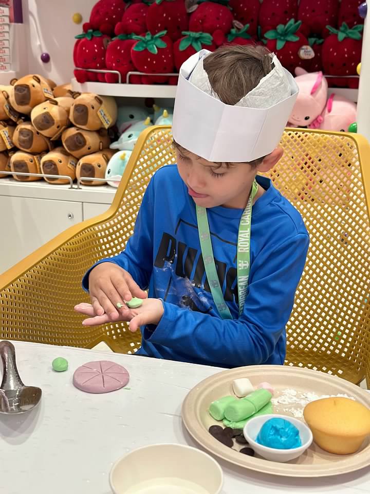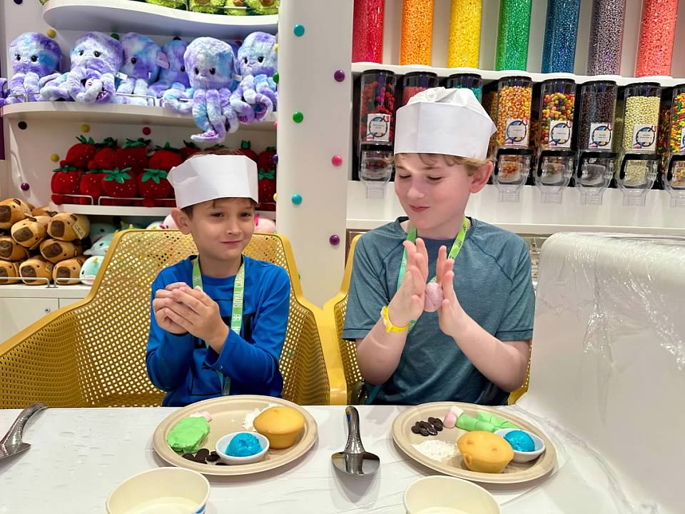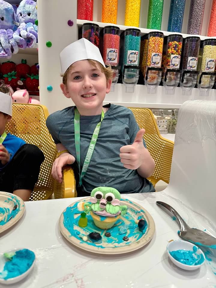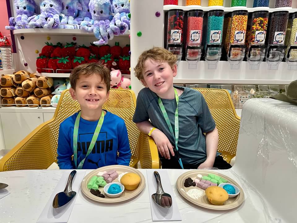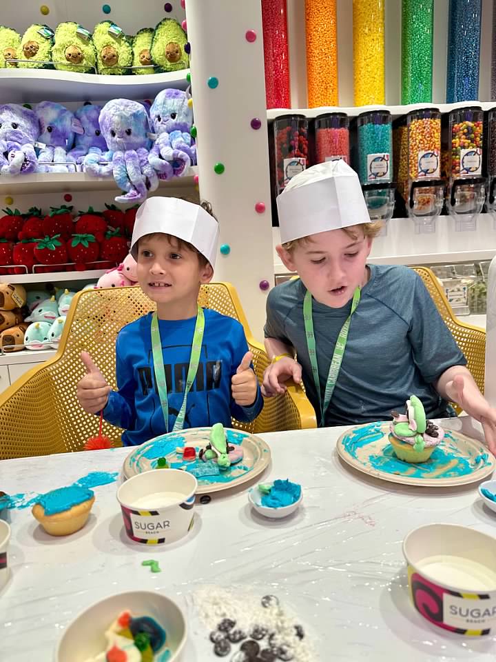 We booked a cupcake decorating class that was held in the candy store, and both boys enjoyed it.