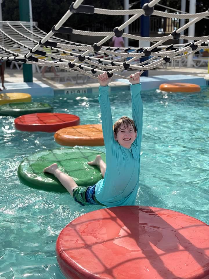 Finn was always too scared to try these types of obstacle courses at the Great Wolf Lodge, but he did them this time, and couldn't get enough!