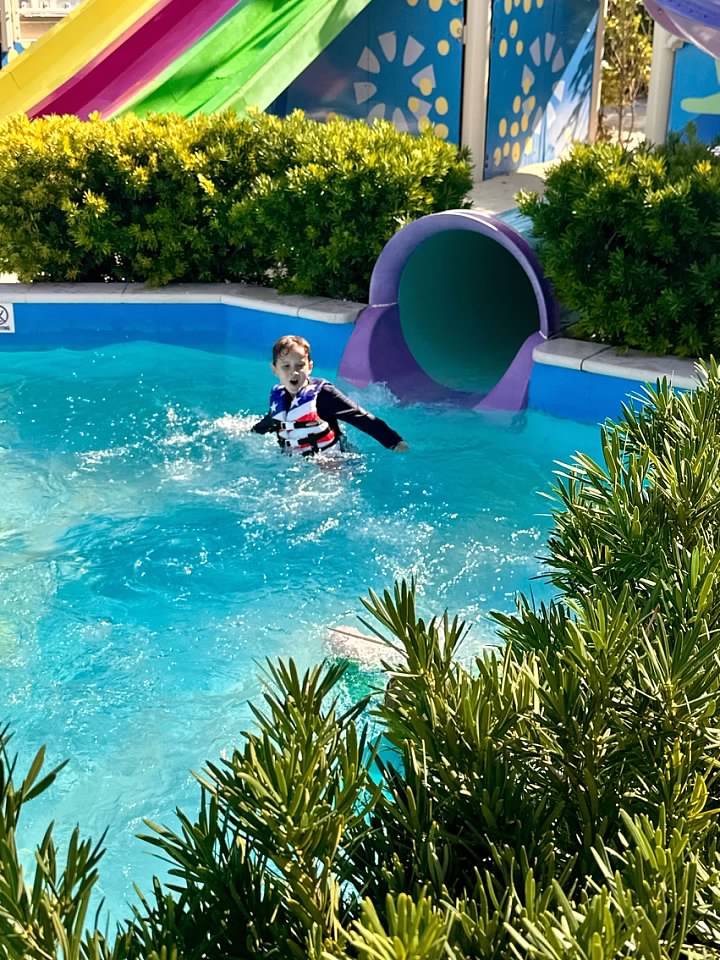 We all went on the water slides together for a bit, before Katie and Christina took Fox on jet skis for the rest of the day, and Finn and I got to hang out.