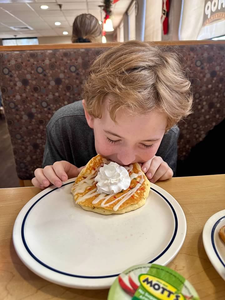 The next morning we had breakfast at I-hop, and Fox was really enjoying his pancakes. He kept saying how much he loved that we were ALL together.